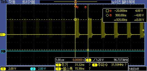 STM32G0의 일반 SPI 통신 속도는 SPI 데이터 사이 간격이 920ns로 측정된다.