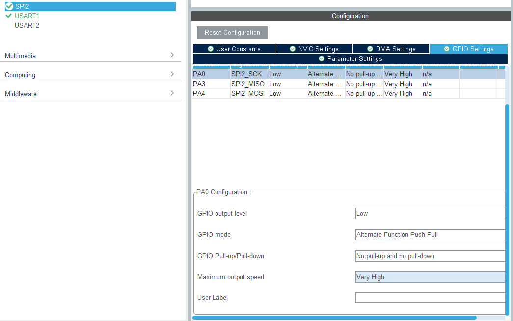 SPI클럭을 최대 주파수로 사용하기 때문에 GPIO 스피드 설정도 VeryHigh 로 설정해 주어야 한다.
