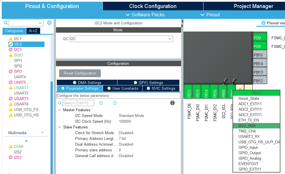 카메라관련 설정은 I2C 인터페이스로 가능하고 I2C2를 활성화 하도록 했다.