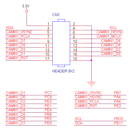 [STM32F4-RP] 보드의 카메라 인터페이스(DCMI) 핀맵은 아래 그림과 같다.