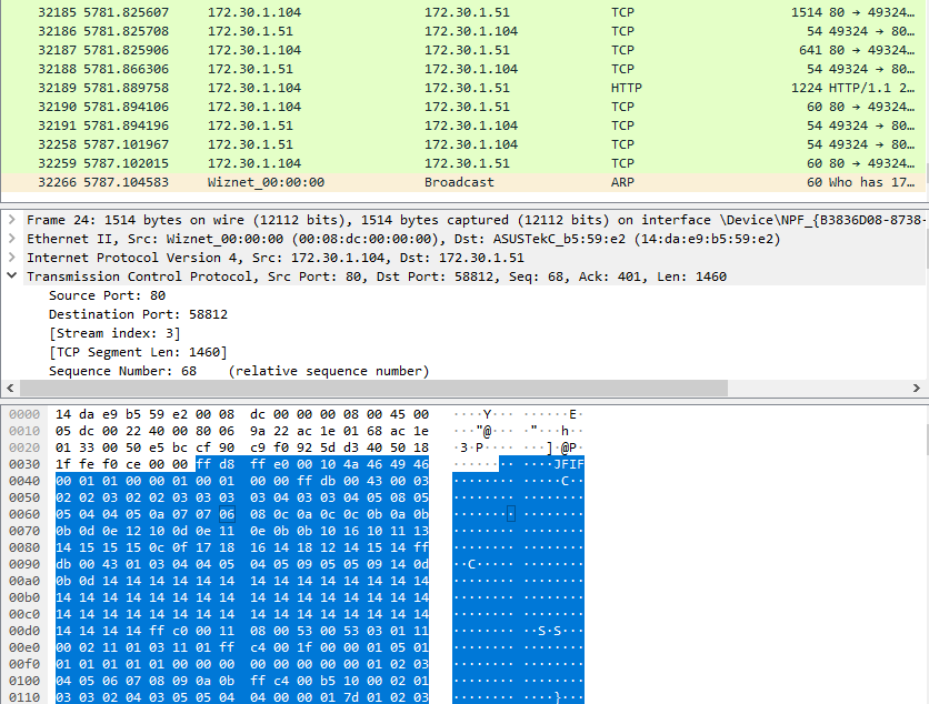 네트워크로 보낸 패킷을 캡쳐 해보면 정상적으로 보내는 것을 확인 할 수 있다.