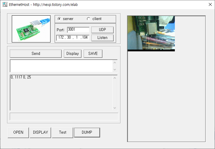 우선 간단하게 기존에 작성해 두었던 이더넷을 이용한 이미지파일 전송 테스트에서 사용했던 PC프로그램을 조금 수정해서 UDP로 전송되는 이미지를 출력 해 보았다.