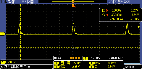 레지스터를 직접 제어 하면 14ns 로 측정된다. nRF52는 Cortex-M4코어에 64Mhz로 구동된다. 64Mhz로 구동되는 Cortex-M0 코어의 STM32G0 보드의 Aruino 구동 속도와 비슷하게 측정된다.