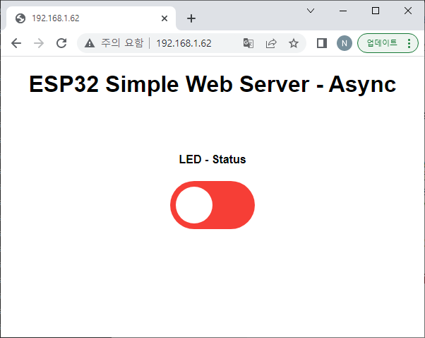 서버측에서는 상태 값에 따라 LED를 제어 할 수 있는 update 함수를 등록해서 제어 할 수 있도록 했다.