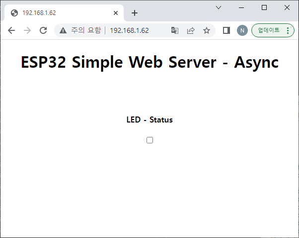 웹페이지 실행후 체크 박스의 상태에 따라 LED가 제어 되는 것을 확인 할수 있다.