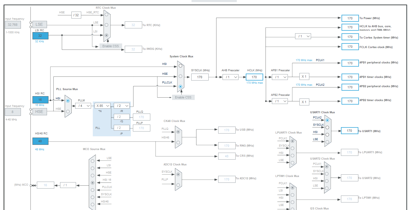 클럭설정은 최대 클럭인 170Mhz로 설정한다.