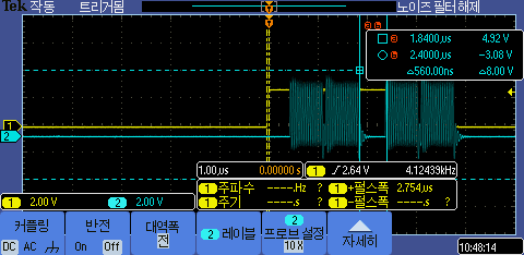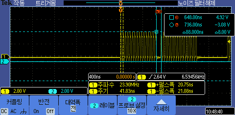 테스트 결과 DMA 전송간 지연시간도 500ns정도로 측정이 된다.