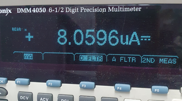 ESP32에서 슬립 모드 진입시 소모 전류는 8uA로 측정이 된다.