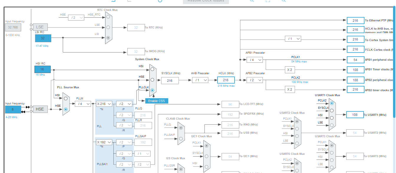 마지막으로 클럭 설정을 218Mhz로 해 주면 된다.