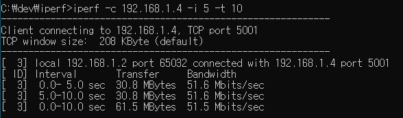 iperf 프로그램으로 STM32F7에서 내장 이더넷으로 TCP 전송률을 측정해 보면 50Mbps 정도로 측정이 된다.