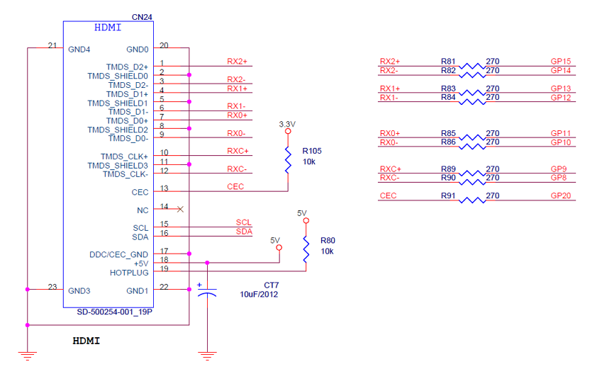 HDMI 출력 회로는 아래와 같다.