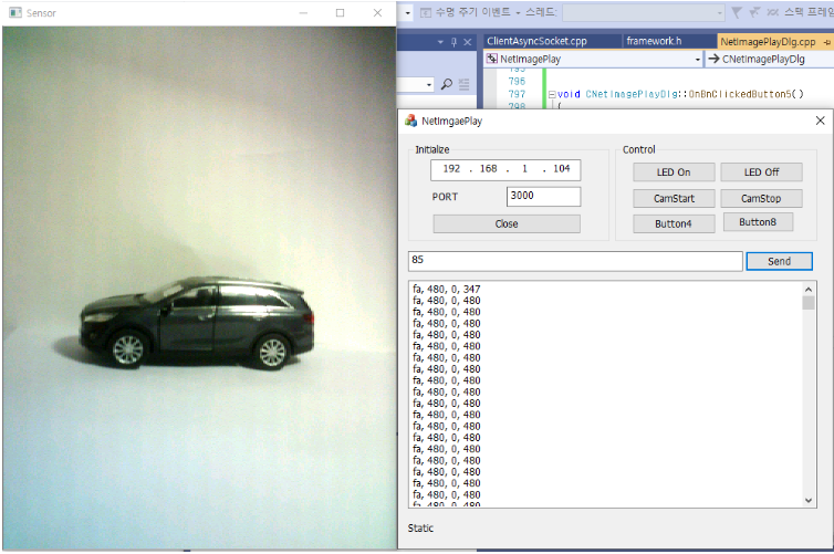 TCP 클라언트로 동작하며 W5300 네트워크 카메라 서버로 부터 전송 받은 영상을 출력한다.