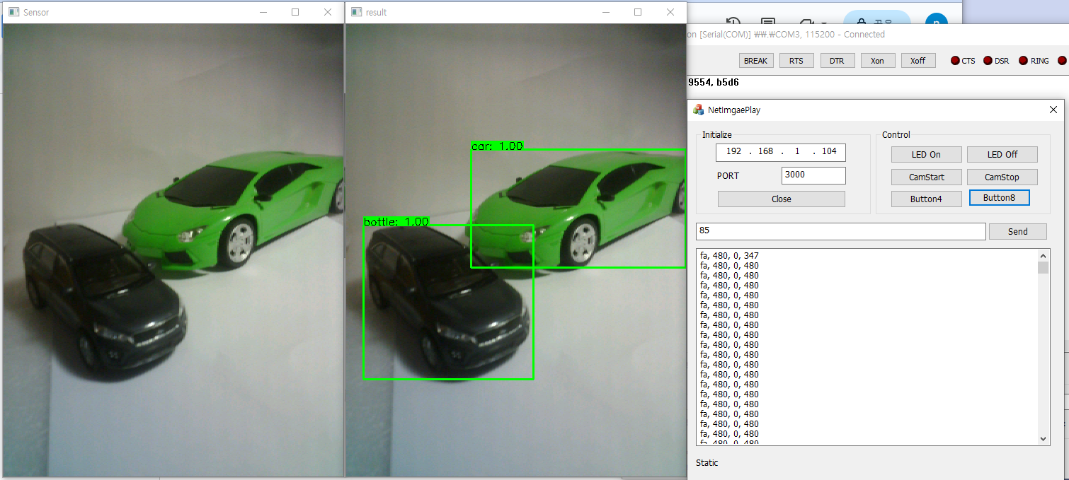 W5300 네트웍 카메라를 이용한 실시간 DNN 처리 결과