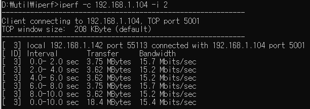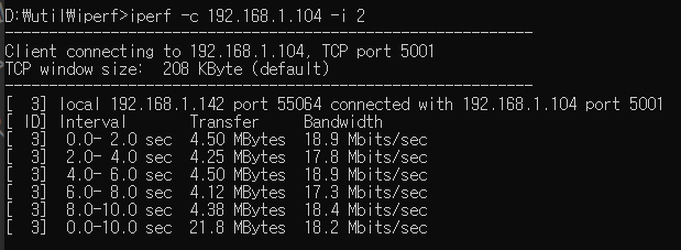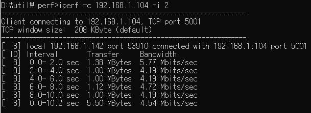 버퍼 수정후 전송률을 측정해 보면 8Mbps정도로 측정이 된다. 아직 느리다.