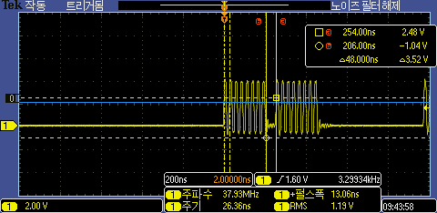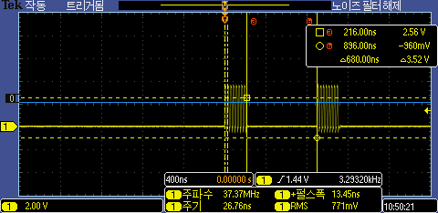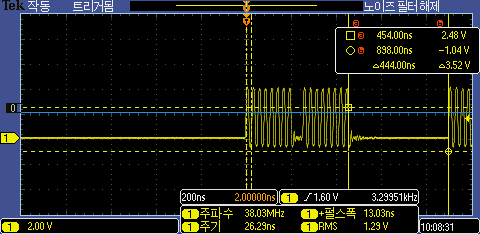 SDK 환경에서 SPI 전송 테스트를 해보면 SPI Bye 전송 지연은 680ns로 Arduino 환경과 비슷하게 측정이 된다.