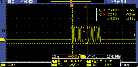 옵티마이즈 했을 경우 DMA 블럭 전송 지연은 440ns로 측정이 된다.