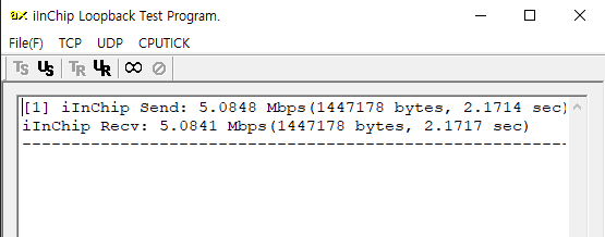 RP2350에서 W6100 을이용한 TCP loopback 테스트 코드로 TCP 전송률을 측정해 보자.