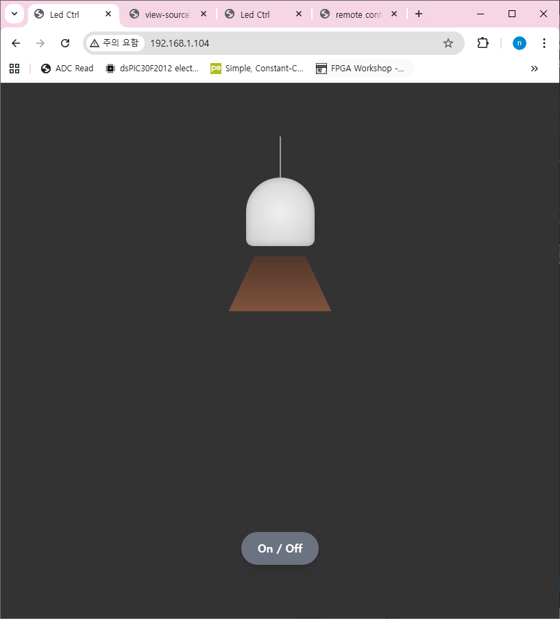 컴파일 후 실행하고 보드의 IP로 접속하면 index_html 페이지가 출력되는 것을 확인 할 수 있다.