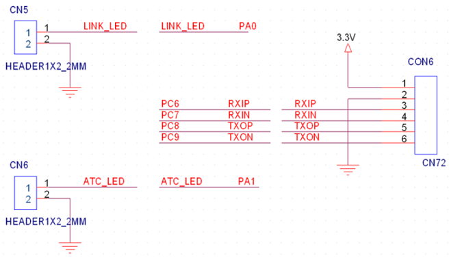 CH32V208 SSM에서 이더넷은 Ethernet 커넥터 모듈에 연결해서 테스트 할 수 있고 이더넷 관련 신호서는 PC6~PC7에 연결되어 있다.